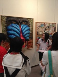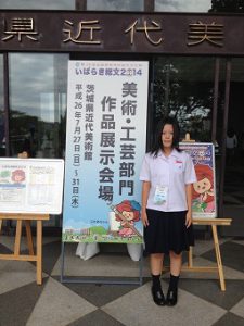 全国高総文祭美術・工芸部門に出場 2014年8月4日 7月27日、28日に茨城県水戸市で行われた全国高総文祭美術・工芸部門に美術部の渥美さんが県代表として出場しました。1日目は県民文化センターにて部門開会式、講演会、2日目は全国の高校生との交流会に参加してきました。全国から集められた県代表作品が県近代美術館に展示され、多くの優れた作品を見ることができ、大変良い機会となりました。