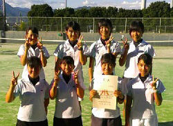 女子ソフトテニス新人戦中部地区 2017年9月23日 【分類】報告 【団体名】女子ソフトテニス部 【場所】草薙庭球場 【内容】女子ソフトテニス新人戦中部地区 学校対抗戦 準優勝 予選リーグを1位で通過。 決勝トーナメントでは川根高校を2-0で下し、続く焼津高校には0-2で負け、中部地区第2位という結果で県大会への出場が決まりました。 メンバーは、長田・望月、山田・久保田、柴崎・杉田、吉村・中村です。