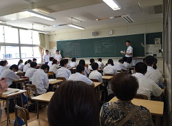 施設見学、学科説明、授業体験、部活動見学などの内容で、午前の部と午後の部に分かれ行われ、中学生や保護者の方々に1日静商生を体験していただくことができました。
