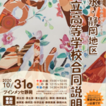 清水・静岡地区公立高等学校合同説明会について 日時 10月31日(土) 10:00~12:00(午前の部) 12:15~14:15(昼の部) 14:30~16:30(午後の部) 場所 ツインメッセ静岡 申込 後日 …