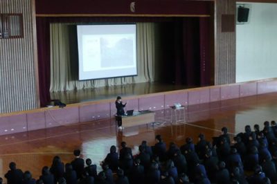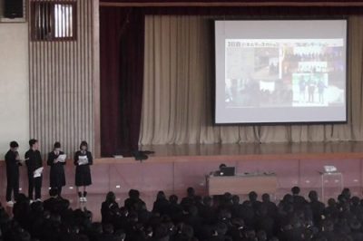 3年生が1・2年生に向けて課題研究発表を行いました。