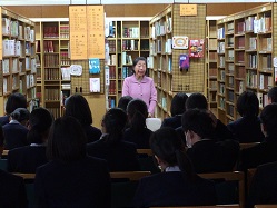 1年生 おはなしの会 2018年2月16日 今年も1年生を対象に、”静岡おはなしの会”の皆さんによる、「おはなしの会」を行いました。お話を丸ごと覚え何も見ずに目の前で語られる物語に、読み聞かせやブックトークとはまた違った物語の世界が感じられ、生徒たちはじっと耳を傾けていました。