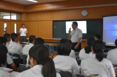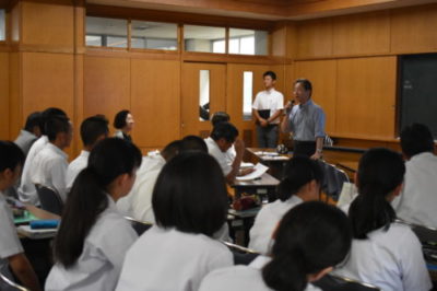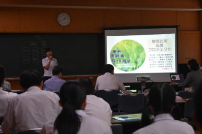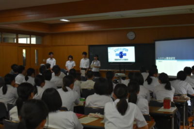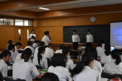 3年生が課題研究での研究テーマを発表 2018年6月15日 3年生が課題研究の授業でこれから取り組む研究テーマについて、同窓会役員の方々、校長先生や関係職員の前で発表を行いました。 同窓会の方々から研究内容についてご意見を頂くことができました。