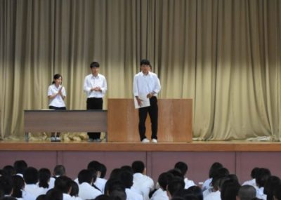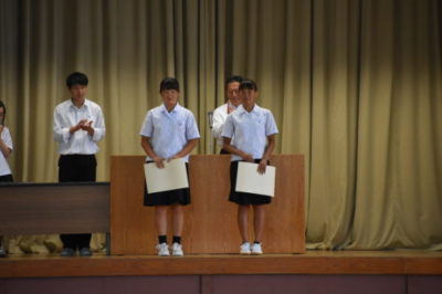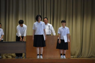 平成30年6月までの部活動等の大会で活躍した生徒の表彰が行われました。