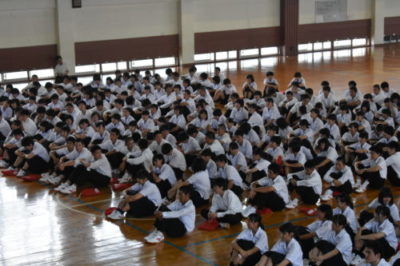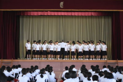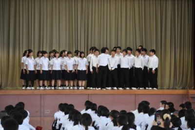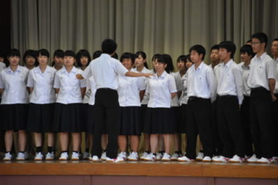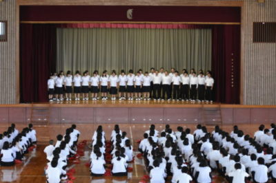 1年生が校歌合唱コンクールを行いました 2018年6月22日 平成30年6月22日(金) 6時間目 1年生が体育館で校歌の合唱コンクールを行いました。 審査員に、校長、副校長、総務課長、生徒課長、青木先生、一年学年主任をお迎えし、校歌だけでなく、姿勢、動作、集団のまとまり等の項目で審査をしていただきました。クラスで校歌を歌うことで、静商生としての自覚や、クラスの和の高りを感じることができる時間となりました。