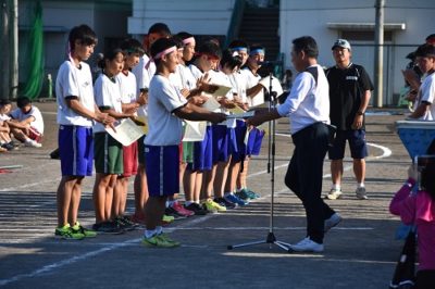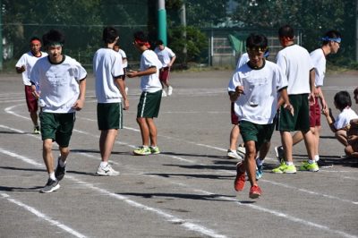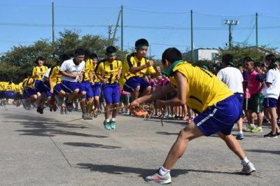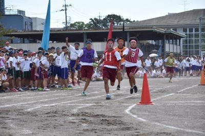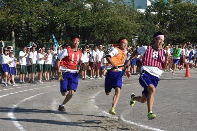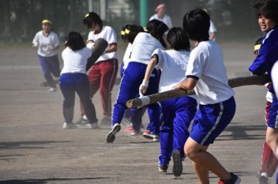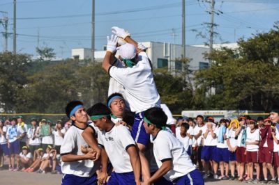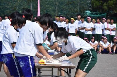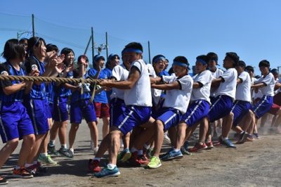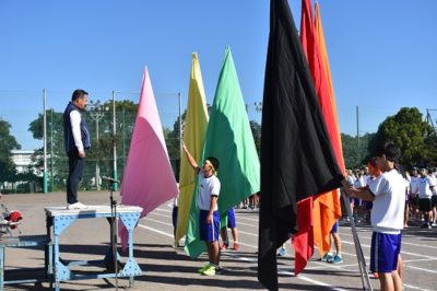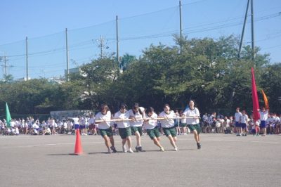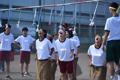 今年は、楽しく、元気に、真剣に、7クラス×3学年が、赤、青、黄、橙、緑、黒、桃の7団に分かれて競い合いました。