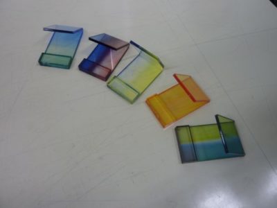 ● スマホスタンドをアクリルで作らせてもらい、色を染めて曲げるなど初めての体験ができてとても楽しかったです。いい作品、デザインを作るには特徴をつかむことが大事というのはいろいろなことにも繋がると思ったのでとても為になりました。