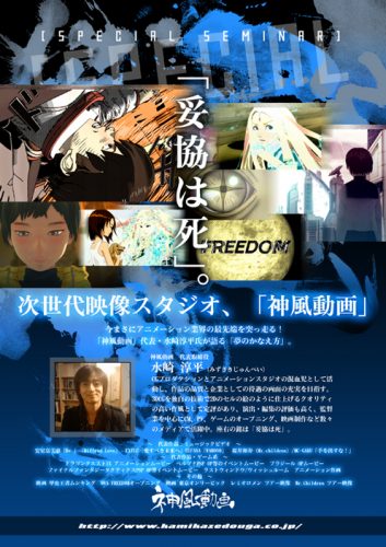PV、CM、ゲーム映像、映画等の演出、制作を手がける「神風動画」代表取締役。3DCGを2Dのように処理した画像が特徴的。