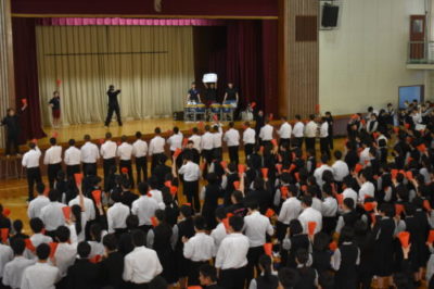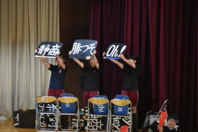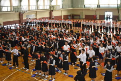1年生が朝から体育館で、応援団部・チアリーダー部と一緒に野球応援の練習を行いました