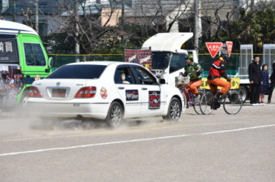 再現!交通事故その瞬間 2019年3月15日 全校生徒が交通安全教室に参加しました。スタントのプロ集団「スーパードライバーズ」による迫真の事故の再現場面を目の当たりにし事故の怖さを肌で感じることができました。