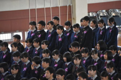 平成30年度 卒業式 2019年3月1日 平成31年3月1日、本校体育館において平成30年度 第71回(通算110回) 卒業式を挙行しました。3年生281名に卒業証書が手渡され、来賓の方々、保護者、教職員、在校生に温かく見守られながら新たな希望を胸に本校を巣立ちました。
