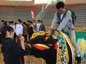 ホテルを出発し、沖縄の文化である闘牛を鑑賞しました。