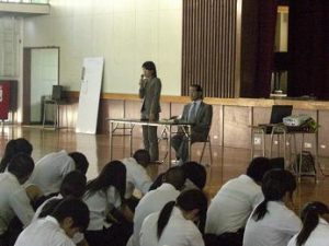 梅雨入りし、急に暑くなった日の講演会でしたが、2年生のみなさん、集中し静かに受講していました。