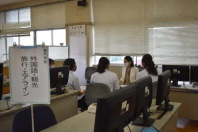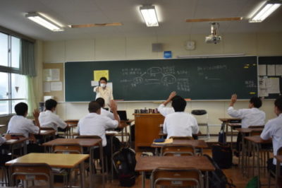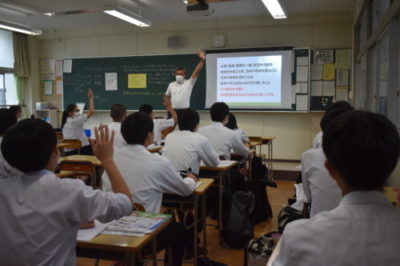 3年生対象の進路ガイダンス開催 2020年7月17日 例年5月に行われているさんぽう主催の模擬講義・模擬授業形式進路説明会を開催しました。様々な分野の大学、短期大学、専門学校、企業にご参加いただき、それぞれの教室で説明会が行われ、生徒達はメモをとりながら真剣に参加していました。