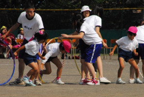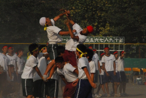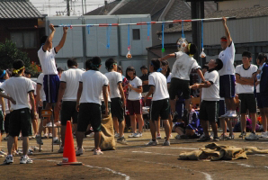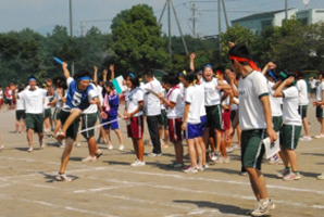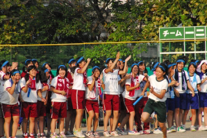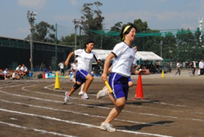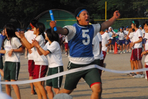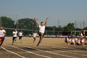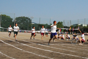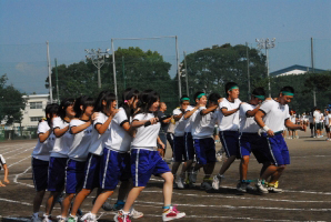 体育祭が行われました 2010年10月7日 10月6日、秋晴れの空の下、体育祭が実施されました。 今年も学年の垣根を超えた団結力で、手に汗握る勝負が繰り広げられました。 結果は、青組優勝! 生徒たちの熱い戦いぶりをご覧ください。 100m女子決勝 100m男子決勝 HR対抗1年 HR対抗3年 ムカデ 園児と一緒 園児と一緒に応援 騎馬戦 障害物競走 色別リレー 色別リレー 青組優勝!