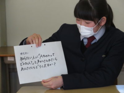 進路が決定した3年生の代表者が2年生の教室で進路懇談会を行いました。進路を決定するまでの経緯やどのように準備してきたか、2年生までにやっておいた方が良いこと等、後輩に話してくれました。