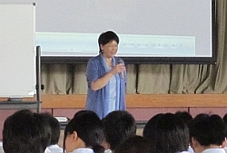 青少年の性に関する現状と正しい知識のほか、助産師の経験談を交え、トラブルによって不幸な高校生活とならないように、そして、将来は幸せな家庭・出産を迎えられるように、自分の心身は自分で大事にしていくことの大切さを、語りかけるようにお話いただきました。