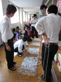 文化祭に向けて準備中 2011年9月29日 今日は、朝から一日、文化祭の準備です。 各クラス・部活動等、公開日に向けて急ピッチで準備が進められています。 これまで準備をしてきた装飾等が、教室いっぱいに展開されていきます。 昇降口や体育館、階段等も装飾され、いよいよ文化祭らしくなっていきます。