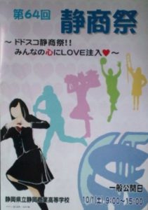 平成23年9月30日(金)、10月1日(土)の2日間、静商祭の文化祭が行われました。各部活動、クラス等の団体で趣向を凝らしたステージ発表や、展示・販売が行われ、前夜祭を含め、大変盛り上がった2日間となりました。