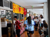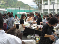 今年も、PTA、同窓会の方々のご協力で、お弁当、生花、サンダル、 SEISHOタオル等も販売されました。 売上金につきましては、今後の生徒活動に活用させていただきます。 ご協力ありがとうございました。 書道部は1年生と2年生は臨書という、本の中から選んだ字をかき、 3年生は自由な作品をかきました。