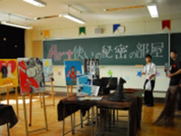 華道部は生徒ホールに展示。 日頃の成果を発揮し、皆様をおもてなしの心でお迎えします。 美術部はハリーポッターにでてくるホールをイメージ。 4つの寮を表す旗や、ほうき、マンドラゴラなどなじみのある物やキャラクターなど。 家庭部はシュガーケーキとその原料である砂糖についての研究展示。 手作りお菓子の販売もあります。