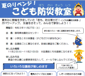 夏休みに開催を予定していた「君も、防災博士だ!-こども地震防災教室-」がパワーアップ。 友達をさそって、みんなで参加しよう!!