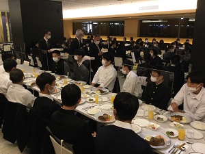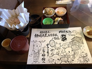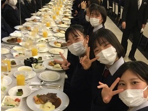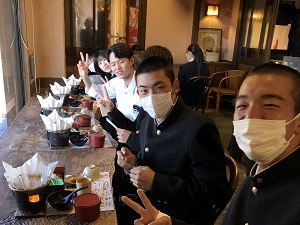 午前中バス移動して、各クラス別にお昼ごはんを食べています。 写真は23HR、なら和み館です。