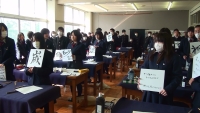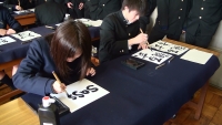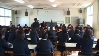 1年生 芸術合同発表会 2012年2月23日 2月21日、22日の芸術Ⅰ授業時間に芸術合同発表会を行いました。1年間、音楽Ⅰ、美術Ⅰ、書道Ⅰを学習してきた1年生がそれぞれ学習の成果を発表し合いました。 音楽Ⅰではギターの合奏、合唱など4曲を発表。 書道Ⅰでは色紙に自分の好きな文字をその場で書いて披露してくれました。美術Ⅰでは、制作した作品を1週間展示しました。