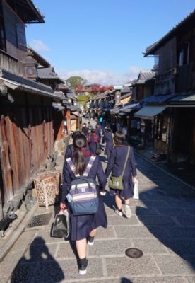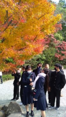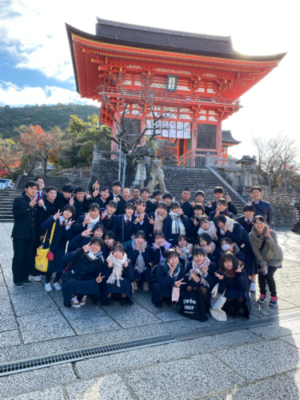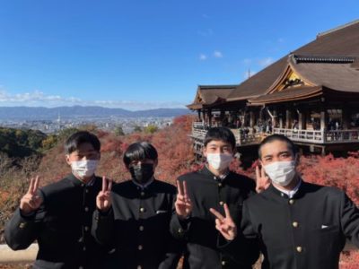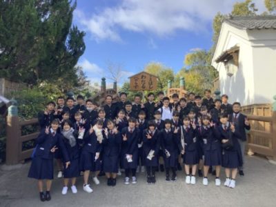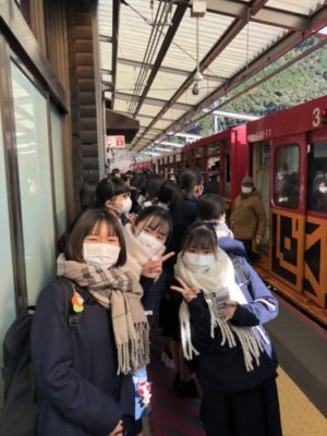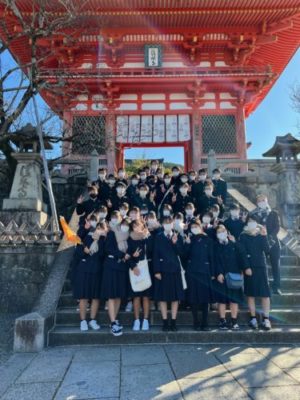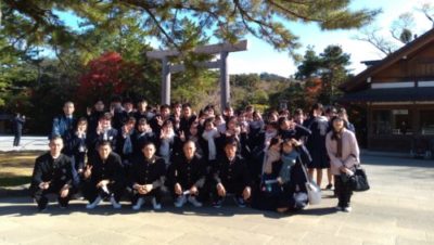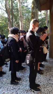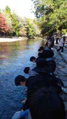 2021修学旅行研修 2年生 4日目 2021年12月2日 本日は修学旅行最終日。クラスごとに研修をして帰ります。 いってきまーす! クラス別研修 太秦映画村 伊勢神宮鳥居前 清水寺 トロッコ列車に乗りました! 昼食 伊勢神宮内宮参拝 五十鈴川で手水を使って正殿へ 荒魂社で願掛け 最恐のお化け屋敷から帰還 手裏剣体験 疲れも少し出ていますが、最終日も満足できる1日となりました。