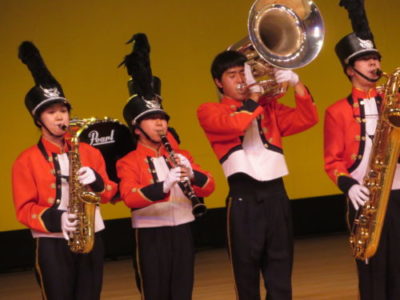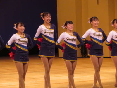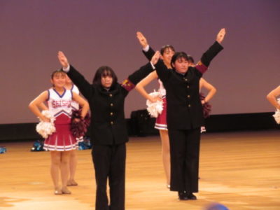 応援団部とチアリーディング部の演技、有志による歌やダンス、音楽部の演奏がステージで発表されました。
