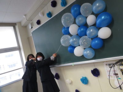 12月14日 静商祭(文化祭)校内発表を行いました。生徒会のアナウンスで開会式がスタート。各クラスのCMが配信され、各教室では文化部の作品展示や販売、3年生課題研究の展示の他、1年生は休憩室の装飾、2年生は参加型のゲーム、3年生は飲食物販が行われました。半日という限られた時間ではありましたが、2年ぶりの開催を楽しむことができました。