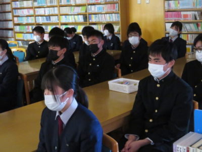 静岡おはなしの会の皆様に来校いただき、1年生を対象に「おはなしの会」を行いました。語りてがまるごと覚えたお話を、耳を澄まして聴くことで、生徒達は物語に浸る楽しさを味わうことができました。