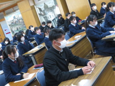 パーソナルカラー研修 2022年1月24日 3年生を対象にパーソナルカラーについてライブ配信による研修会を行いました。 カラーの見分け方や、どのようにパーソナルカラーを用いるのか、好きな色がパーソナルカラーではない場合についてなどのお話や代表生徒のカラー診断を見学することで、自分らしく自分に似合うよう自己表現することの大切さを学ぶ良い機会となりました。