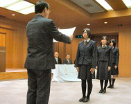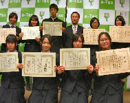 税に関する作品 9名が受賞 2012年11月14日 平成24年度「税に関する作品」の表彰式が11月14日(水)に静岡市役所で行われました。 本校から9名の生徒が表彰を受けました。 本校では、7月に税務教室の授業を静岡税務署員の方から受け、8月に全員が税に関することを調べ、作文を書いています。 静岡税務署長賞 2年秋山 1年木村 3年清水 3年谷口 静岡税務推進協議会長賞 1年金田 2年鈴木 1年前島 3年和田 「税の標語」入選 1年田代