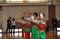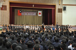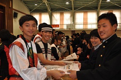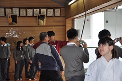 台湾高校生と国際交流 2013年4月23日 台湾の國立水里高級商工職業學校の生徒58名と職員6名が来校。 全校生徒が参加した歓迎・交流セレモニー 民族舞踊 中国雑技 本校音楽部・応援部 記念品交換 体験授業 一緒に名刺制作。 完成した名刺で、名刺交換&記念撮影 英語(英語で自己紹介し、交流を深めました) 部活動見学 弓道体験 部活動見学