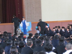 交通指導員の方々を講師にお迎えし、全校生徒を対象とした、交通安全教室が行われました。