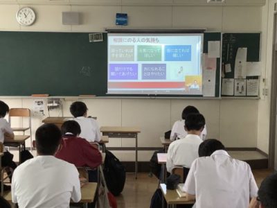 2年生が『SOS』の出し方研修 2022年7月20日 7月14日(木)3時間目 に2年生を対象とした『SOS』の出し方研修をライブ配信で行いました。 日常生活において悩んだ時の対処方法を、静岡市こころの健康センターの講師薮田先生から、教えていただきました。「身体」や「こころ」のSOSサインに気づくこつや、相談することの大切さについてお話いただきました。