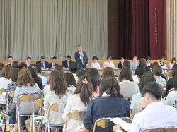 PTA総会終了後、1年生は防災講話、2年生は学級懇談会、3年生は、就職進学の進路ごとに説明会が行われました。