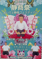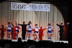 おいでよ静商フェスティバル! 2013年9月28日 第66回 静商祭 おいでよ静商フェスティバル ~笑顔で帰ってもらいましょっ!~ 9月28日、第66回文化祭の一般公開が行われました。 晴天に恵まれ、大勢の方々に来校していただくことができました。誠にありがとうございました。 ステージ部門優秀賞 チア&応援部 部活動部門優秀賞 美術部 装飾部門優秀賞 14HR 演出部門優秀賞 25HR 販売部門優秀賞 34HR 今年も好評でしたPTAバザー