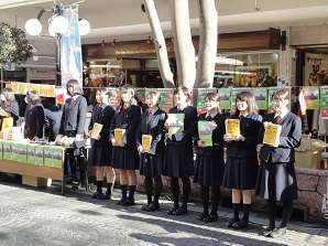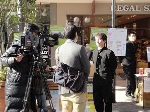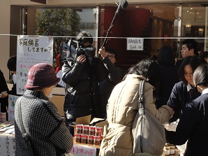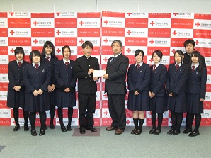平成25年11月30日(土)および平成25年12月21日(土)に静岡市葵区七間町名店街で行われました「青空市」に、課題研究(新商品開発)の授業を選択した3年生10名が参加し、『防災備蓄商品の紹介と販売及び東日本大震災復興支援物産販売』を行いました。当日は多くの方に御賛同・御協力いただき、無事すべての商品を完売することが出来ました。平成26年1月30日(木)日本赤十字社静岡県支部にて収益金26,071円を東日本大震災の義援金として寄附させていただきました。本当にありがとうございました。