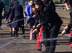 今回は校内自主防災訓練計画に基づき、避難訓練、消火訓練を中心とした防災訓練を実施。