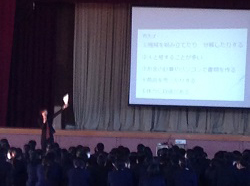 学年集会 2014年12月19日 2年生は、進路希望に分かれて講話。 就職希望対象の就職支援アドバイザーによる講話。 1年生は、SNSに潜む危険性についての講話。 個人情報が公開されることの危険性についてや被害にあわないために注意することなどのお話。 これからの時期、お年玉等でお金を手にする中高生を対象とした、小額請求の詐欺が増えてきます。もし不安なことがあったら、まずは身近な大人に相談しましょう。