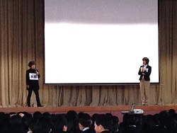 3年生が健康講座 2015年1月21日 寸劇の様子 LHRの時間に、3年生が健康講座を行いました。 今回のテーマは、「デートDV」について。 デートDVを知ることで、被害者にも加害者にもならない、「対等な人間関係」について考え学ぶきっかけになりました。