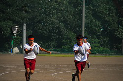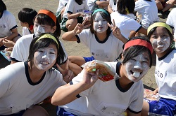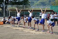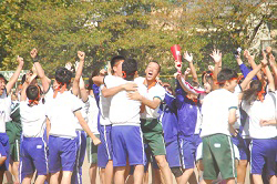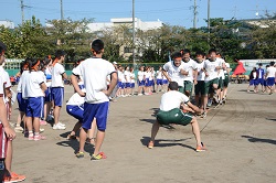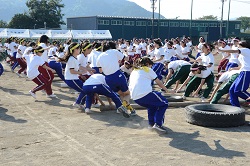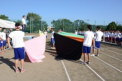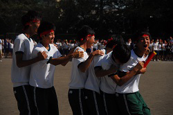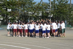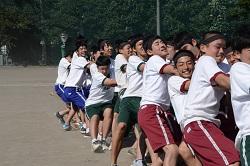 体育祭 開催 2015年10月7日 爽やかな青空のもと、平成27年度体育祭が行いました。 今年は、各学年7色の組に分かれて競い合いました。学年の垣根を越えた団結力で白熱した戦いに、笑いあり、涙あり、気持ちのよい汗を流しました。 優勝 オレンジ組