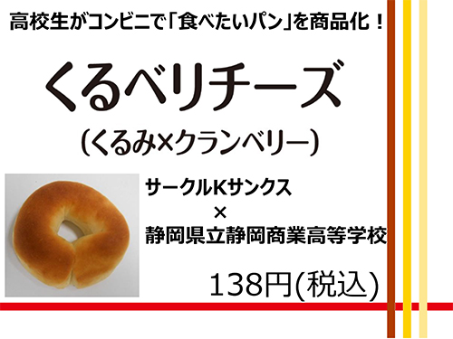 静商 × サークルK コラボ パン発売! 2016年2月23日 サークルKサンクスと家庭部がコラボした菓子パン「くるベリチーズ」が2月23日(火)に発売されます。 県内全てのサークルKサンクスで購入可能です。 くるベリチーズ