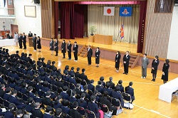 平成28年度 入学式 2016年4月7日 平成28年度 入学式が挙行され、商業科245名(男64名、女141名)、情報処理科80名(男42名、女38名)の285名の入学が許可されました。 担任発表の様子(1年部の職員挨拶)