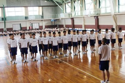 集団行動コンテスト1年 2016年5月2日 1年生が集団行動コンテストを行いました。 集団としての行動を秩序正しく行う「集団行動」の動きを身につけ、校歌をクラス全員で歌うコンテストは、整然とした動きの中に迫力を感じます。 クラスで団結してコンテストに臨むことで、クラスの和を高めることができました。