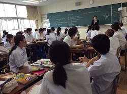 今年度は、実習生が様々な大学から来てくれたこともあり、6月6日(月)の放課後、実習生による進路相談会を実施しました。6名の教育実習生それぞれが大学概要について説明を行い、その後個別に在校生からの相談にのる時間を設けました。在校生約30名が参加しましたが、自分の進路に関わることから大変熱心に聴講していました。また実習生も在校生からの相談に大変熱心に対応にしてくれていました。