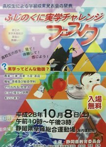 ふじのくに実学チャレンジフェスタ 開催 2016年10月5日 静岡県教育委員会主催のふじのくに実学チャレンジフェスタに、本校生徒が参加します。 開催日 平成28年10月8日 午前10時~午後3時 開催地 静岡県草薙総合運動場 静岡県立の実学系高校が草薙に勢揃い! 高校生の技を、見て!体験して!感じよう! お近くにお越しの際は、是非お立ち寄りください。