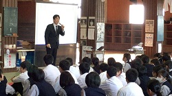 1・2年生 学年集会 2016年10月26日 2年生 修学旅行事前研修 静岡県台湾総会常務理事をお迎えし、 日本と台湾の違い(気候・風土・食文化など)や中国語による簡単な自己紹介の方法など、お話いただきました。 1年生 就職支援講習会 どんなことを仕事にしたいのか、どんな社会人になりたいのか、人材サポートセンターの講師をお迎えしてお話いただきました。